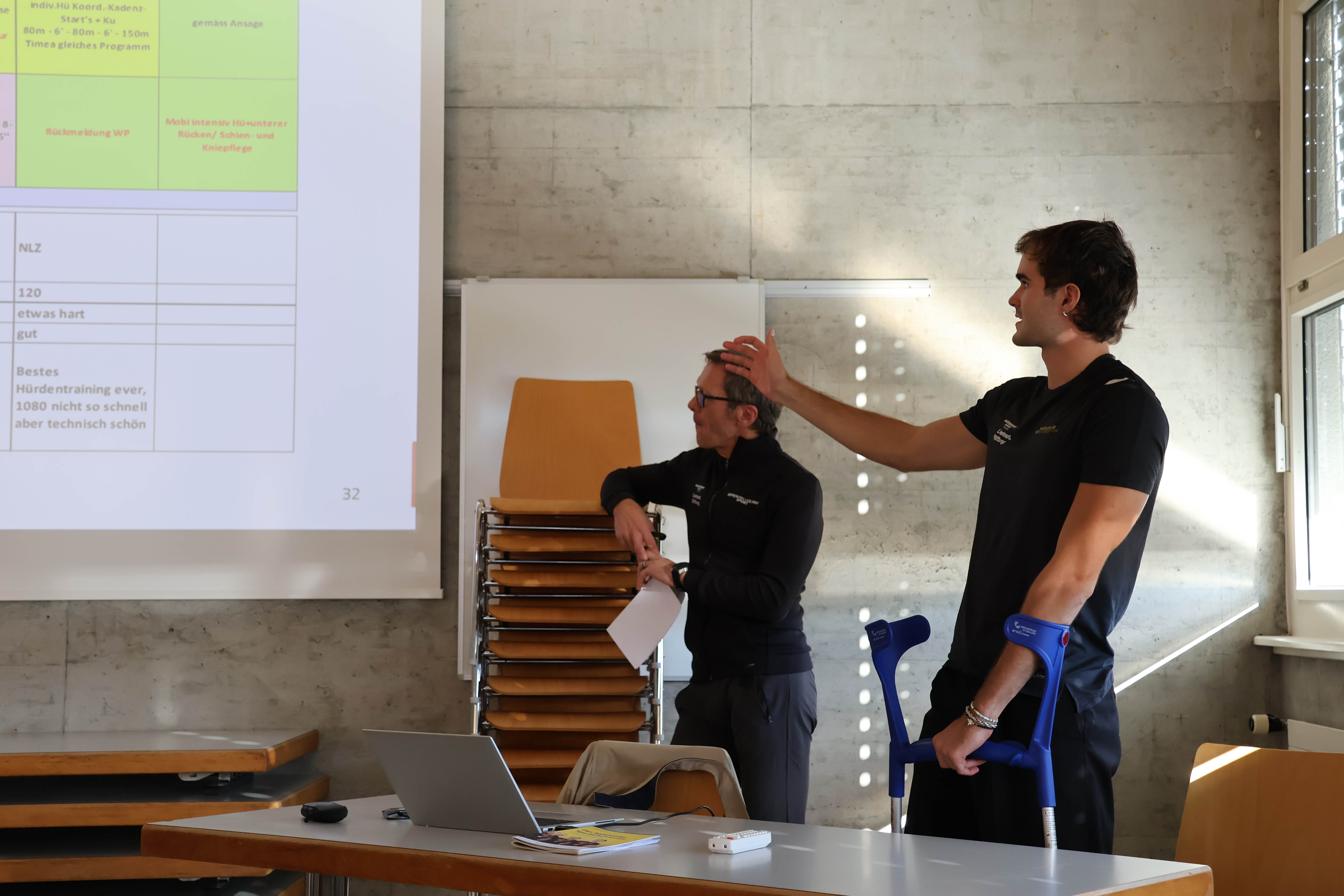 Beim gemeinsamen Mittagessen blieb Zeit für Gespräche, Austausch und Vernetzung, bevor am Nachmittag weitere spannende Einblicke ins Leistungszentrum folgten. Die Teilnehmenden erfuhren von jungen Athleten, wie sie ihre schulische Ausbildung und die sportlichen Ziele unter einen Hut bringen. So stand Andrin Huber, U23-Europameister im Zehnkampf, den Anwesenden Red und Antwort. Auch Verantwortliche aus Schule, Training und Sportförderung standen für einen offenen Austausch zur Verfügung.
